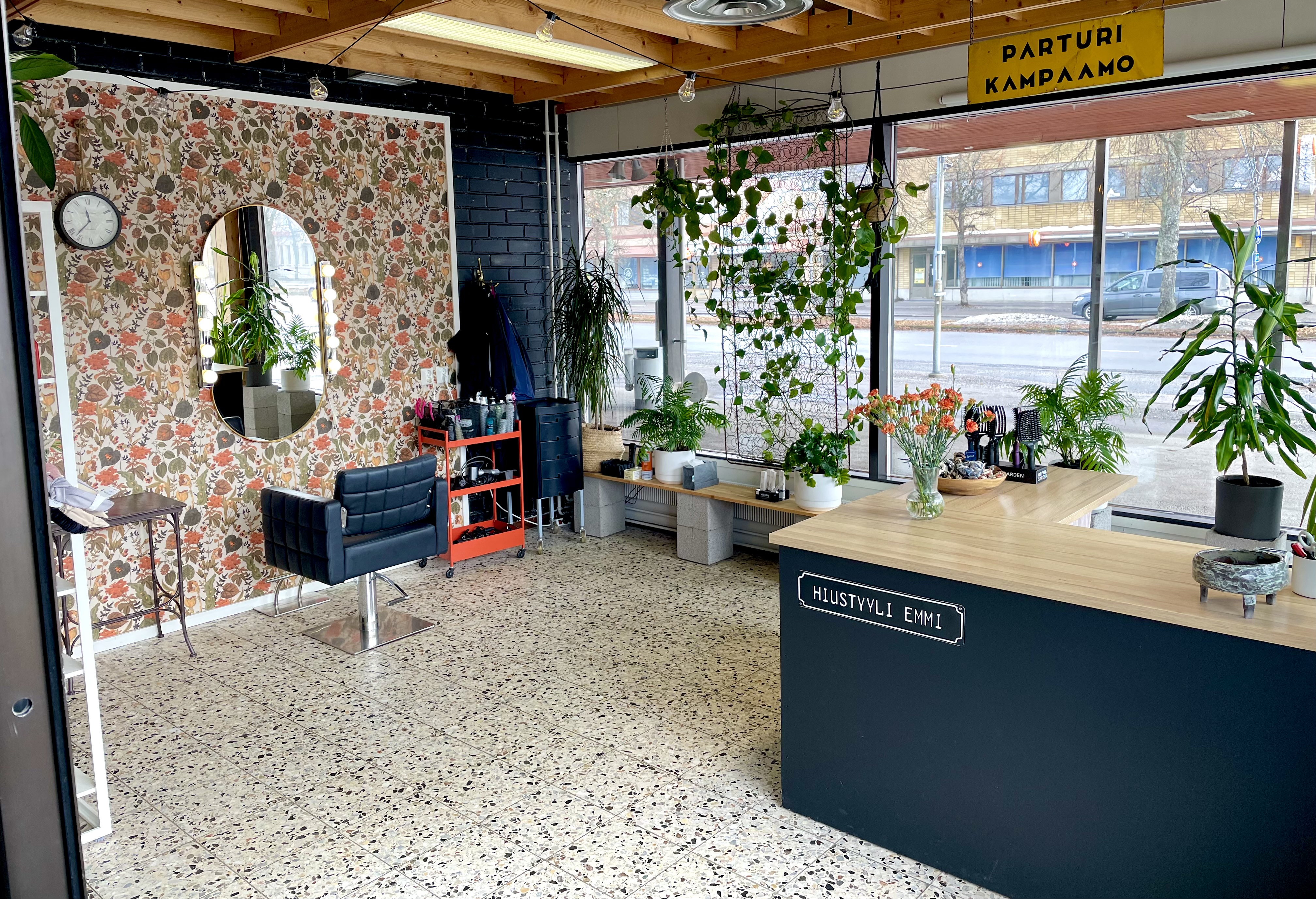 Hiustyyli Emmi on yhden naisen parturi-kampaamo. Kampaamo palveluiden lisäksi tarjolla on kattava valikoima laadukkaita hiustenhoito tuotteita ja tarvikkeita, mm. harjoja,ponnareita,pantoja ym. Taidekaupungissa kun ollaan, löytyy myynnistä myös Kristi Viita-ahon mahtavia tauluja ja keramiikkaa!